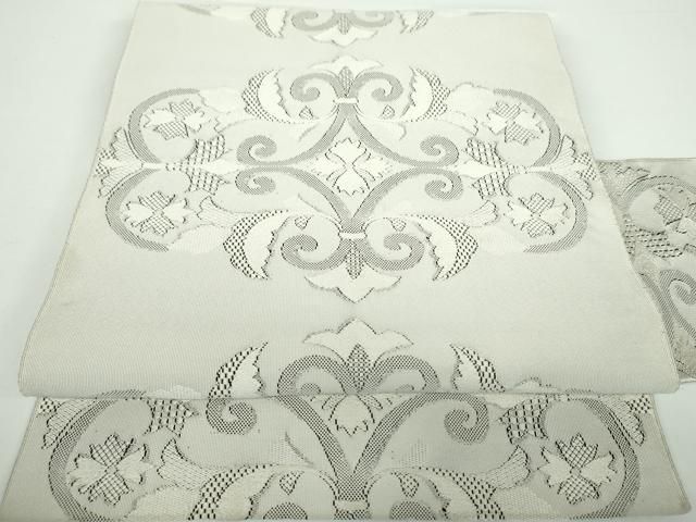 平和屋着物 爪掻き本綴れ 八寸名古屋帯 洋花文 白鼠色 正絹 ps
