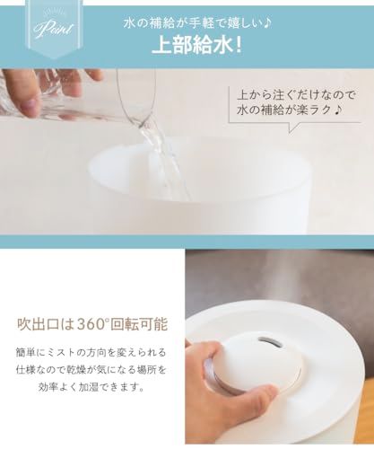 優しくうるおす ハイブリッド 加湿器 3.7 L 大容量 加熱式 超音波 消灯モード 上部給水 最大加湿量300 ml h アロマ対応 12時間連続加湿