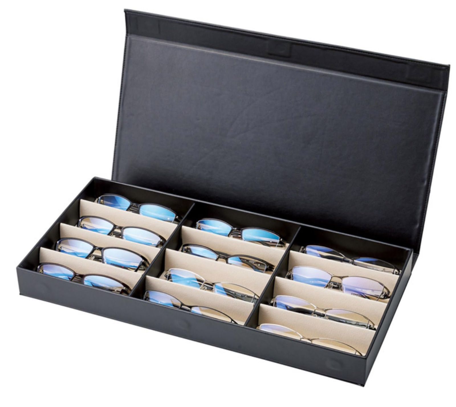 12本 3列 メガネケース 眼鏡 ケース 収納ボックス サングラス 老眼鏡 メガネ 時計 小物収納 などに BK BE 9848