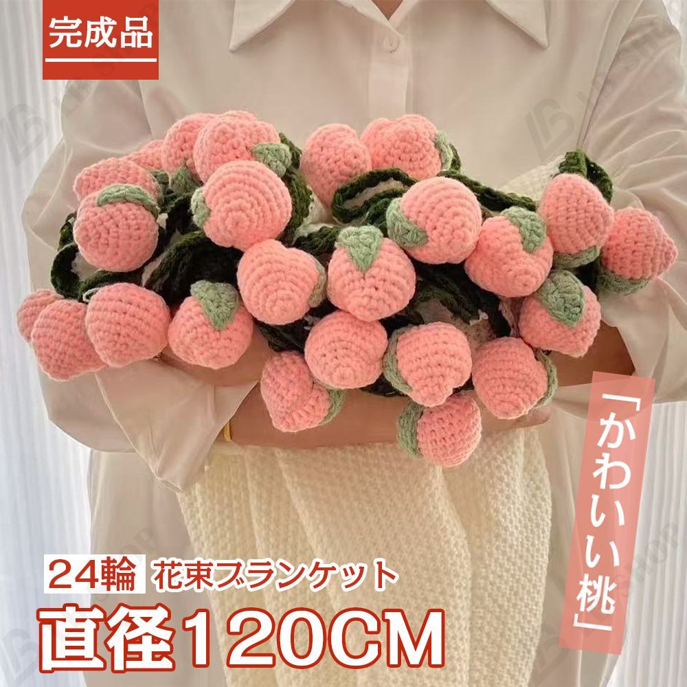 完成品 花束ブランケット 120 CM かわいい桃 れないお花 ブーケ 編み物 枯れない花 ニットブーケ あみぐるみ 花の毛布 毛糸 かぎ編み 手芸 造花 記念日 卒業式 成人式 プレゼント 引越し オフィス 昼寝