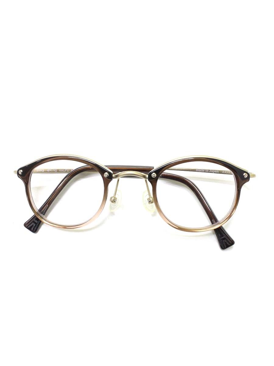 アキット bin 3 メガネ ブラウン ゴールド コンビフレーム フルリム ラウンド