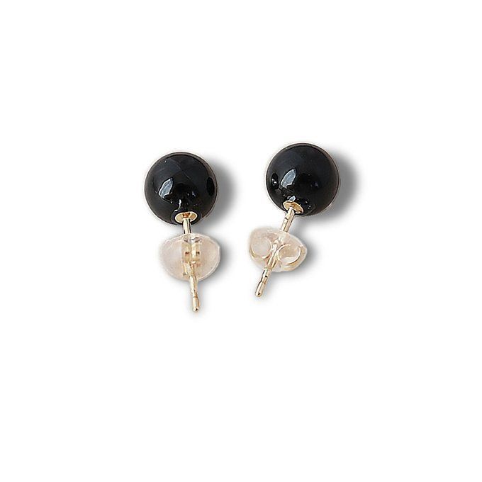 K 18 オニキス ラウンド 約5.5-6 mm 18金スケルトンキャッチ付き スタッドピアス 直結タイプ 18金