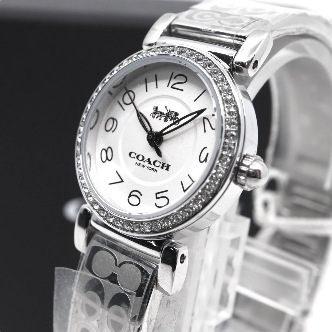 電池交換済 コーチ COACH 腕時計 CA.66.7.95.1489 S レディース クオーツ アナログ ラウンド シルバー ラインストーンベゼル シグネチャーブレスレット エレガント フェミニン ドレスウォッチ クリーニング済 G