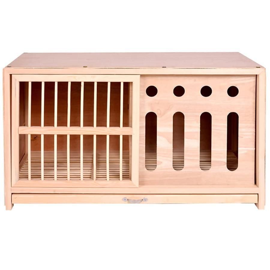 【松材と5枚合板】バードケージは環境にやさしい素材、松材と5枚合板でできています。表面は滑らかに磨かれ、鳥に害を及ぼすことはありません。高品質のハードウェアアクセサリは錆びず、シンプルで美しいです。あなたの鳩に快適な家を提供してください。