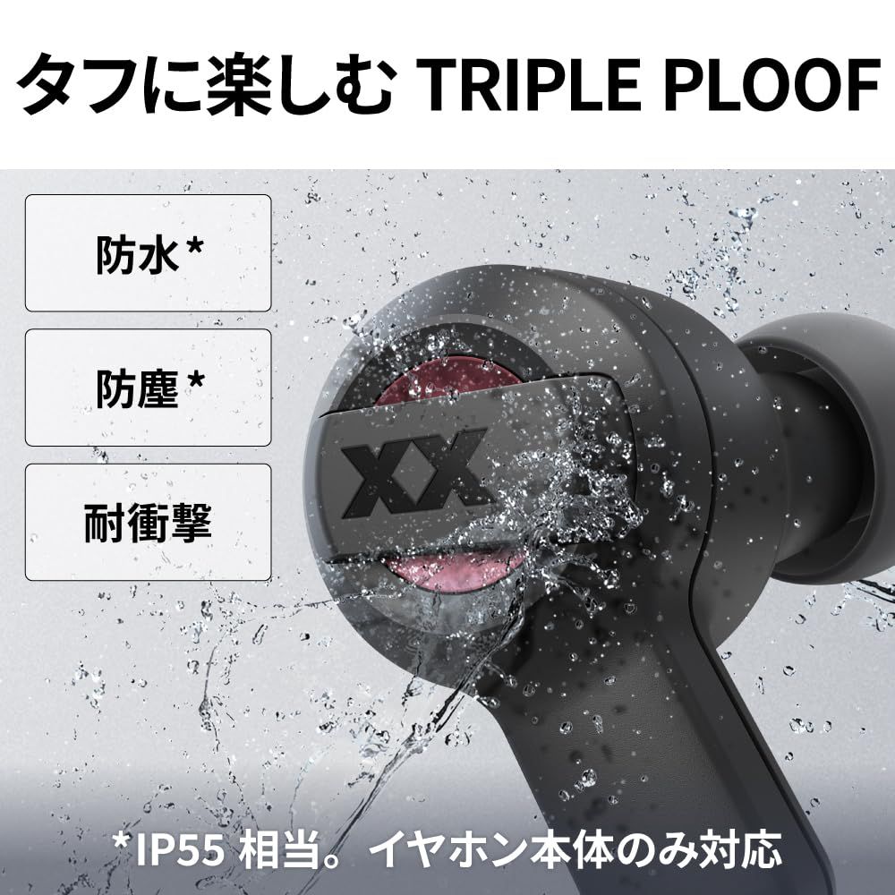 「XX」シリーズで好評の迫力の重低音を楽しめるよう、エンジニアが特別にチューニングを実施し、重低音を際立たせつつ、一つ一つの楽器やボーカルの音もクリアに楽しめるサウンドを実現。また、3つのサウンドモード(NORMAL/BASS/CLEAR)を搭載しており、モードを切り替えることで、気分や好みに合わせて、低音の増減などを調整することも可能。衝撃に強いエラストマー素材のラバープロテクターと耳にフィットしやすいスティック型を採用。イヤホン本体は片耳約4.4gと軽量で、スリムな充電ケースは鞄やポケットに収まり、持ち運びやすく便利です。ラバープロテクターによる耐衝撃に加え、IP55相当の防水※1・防塵※1を実現した「TRIPLE