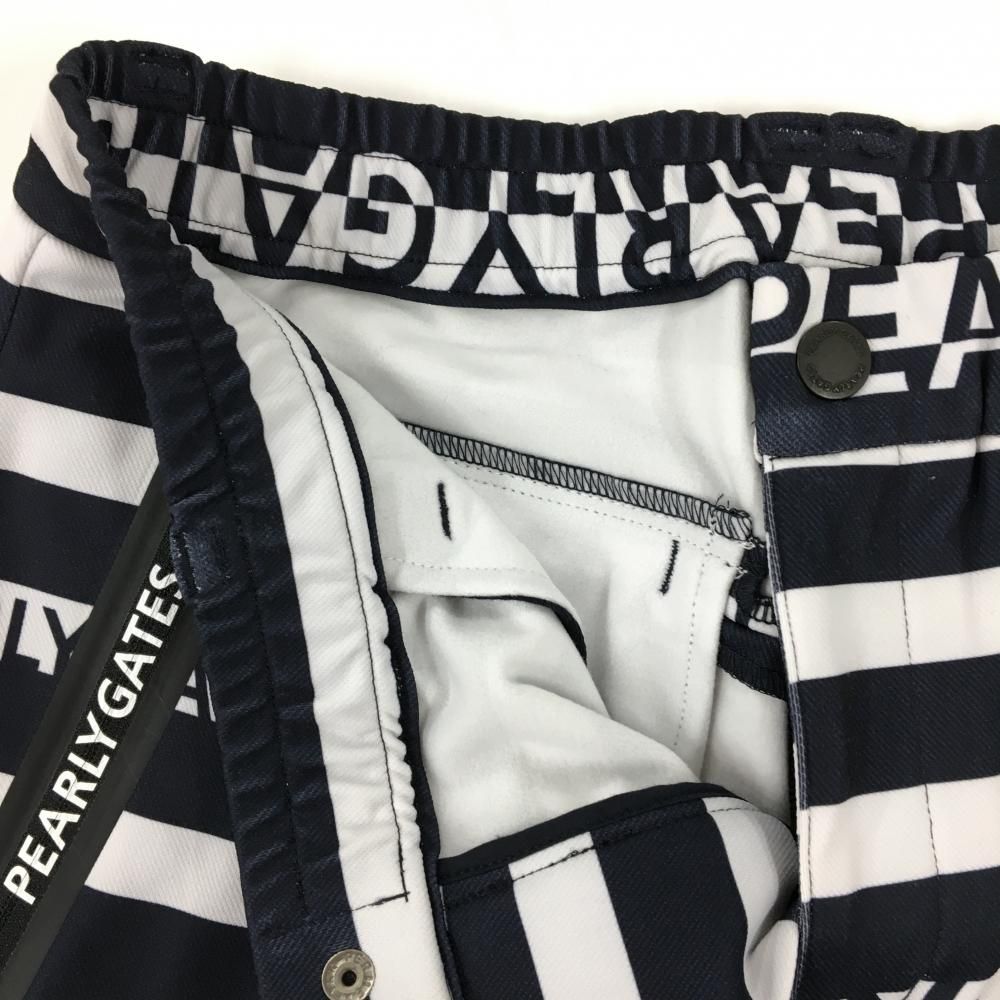 パーリーゲイツ ジョガーパンツ 白×ネイビー ボーダー 裏微起毛 ウエストゴム レディース 0 S ゴルフウェア PEARLY GATES
