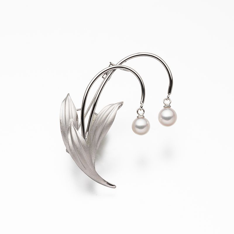 しなやかに伸びる2本の茎と立体的な葉のフォルムは自然の美しさを表現しており、そこに7mmのアコヤパールが可憐なアクセントを添えます。