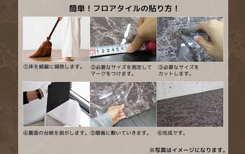 ・サイズには若干の誤差がありますので、タイル同士の隙間で調整しながら敷き詰めてください。