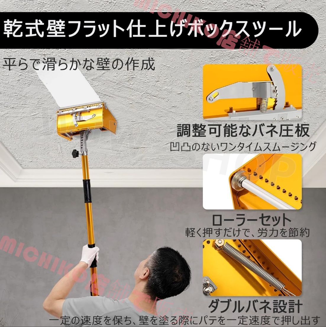 乾式壁ツール フラットボックス アルミニウム合金 プロフェッショナル 乾式壁フラット仕上げパテボックス 角度調整 均一速度パテを押し出す 乾式壁マッドコンパウンド 乾式壁パテ 壁処理を仕上げ 左官道具 伸縮ロッド付き 10 6 in