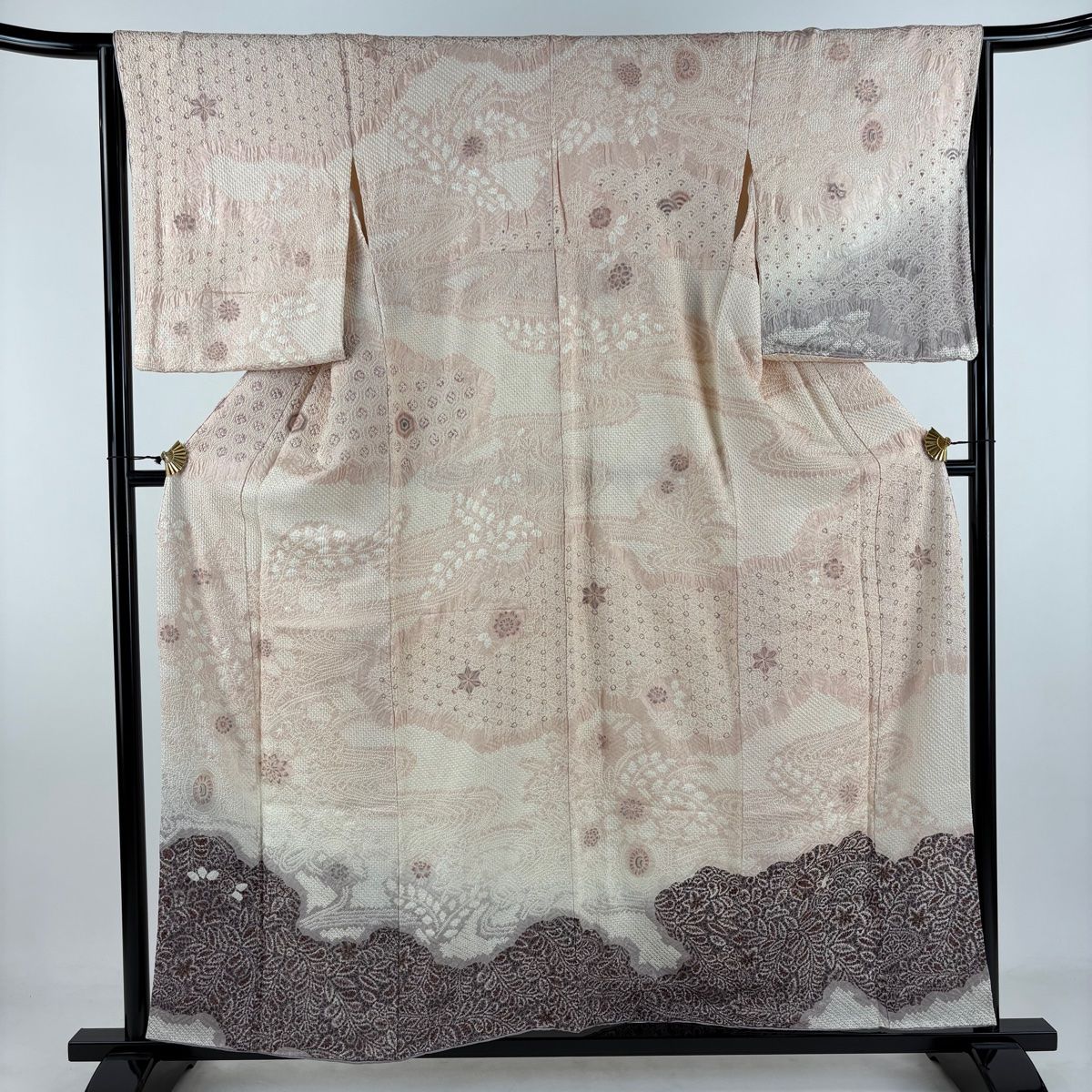 訪問着 身丈157 cm 裄丈65 M 袷 やまと 草花 流水 絞り 薄ピンク 正絹 秀品