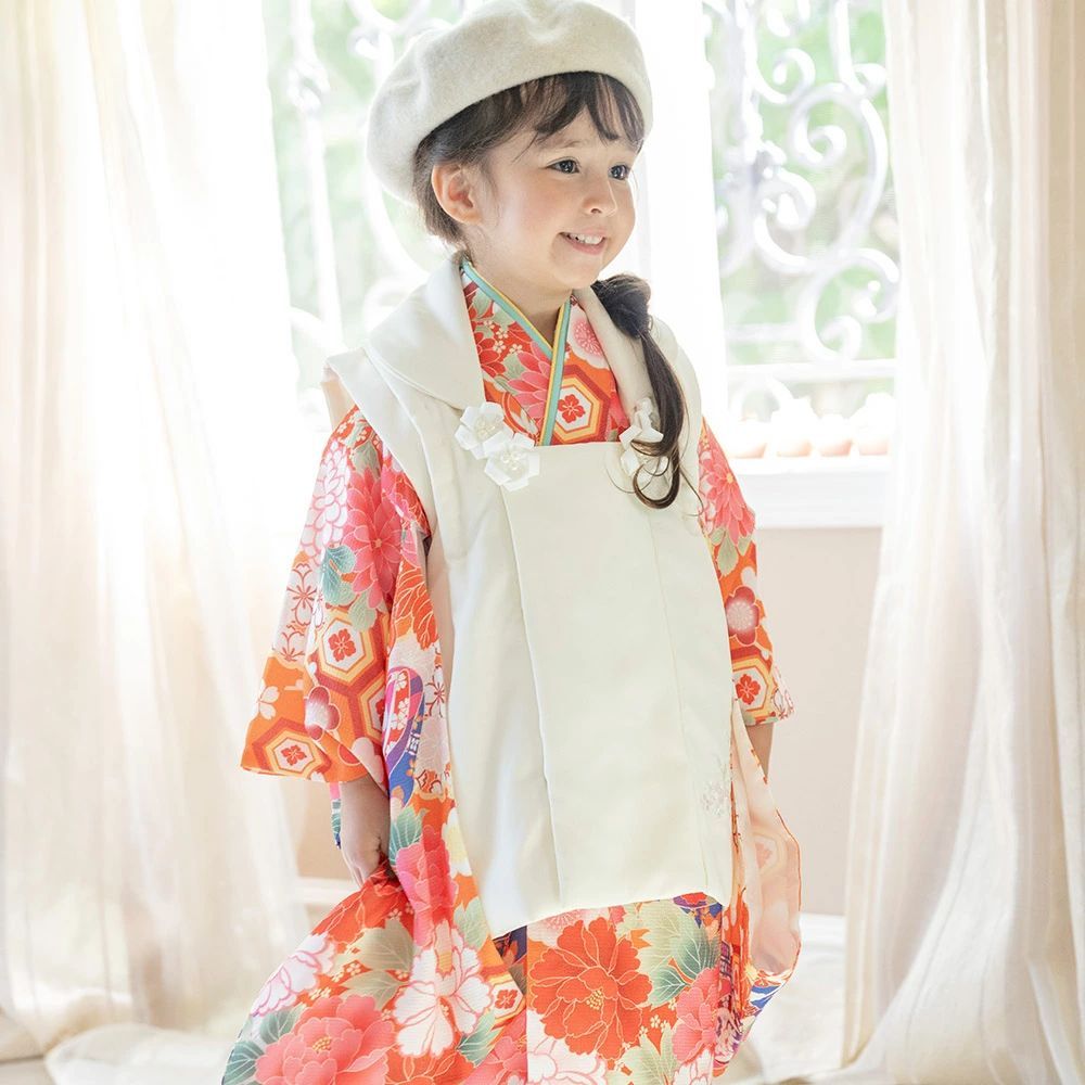 華こっぽり橙×乳白被布 京都絵師によるオリジナル柄&レース生地の被布セット 七五三 キャサリンコテージ TAK