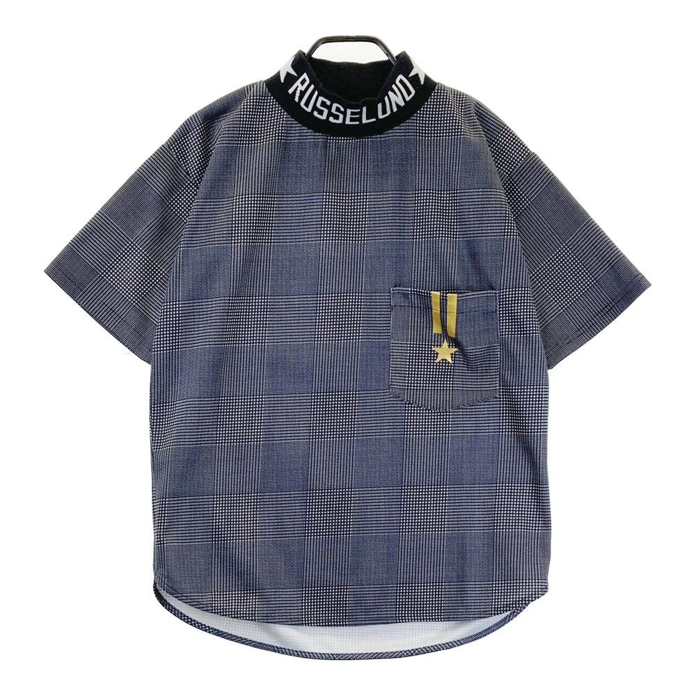 サイズ 2 ラッセルノ ハイネック 半袖Tシャツ グレンチェック柄 ブラック系 ゴルフウェア レディース ストスト