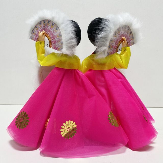 韓国人形 双舞 ピンク 韓国伝統衣装の本格韓国人形 韓国舞踊 扇子の舞い doll d 96 s 韓国 人形 舞踊 韓服 チマチョゴリ