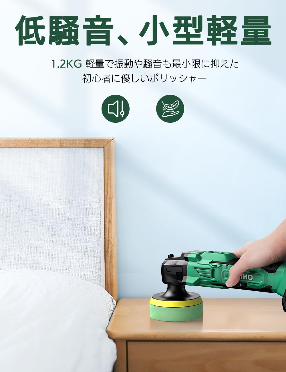 KIMO ポリッシャー 車 2 0 AHバッテリー 電動ポリッシャー ポリッシャー充電式 コードレスポリッシャー 6段変速 最大3634 RPM 1 KG軽量 大直径バフで効率アップ 電動カーポリッシャー 洗車 サンドペーパー 8