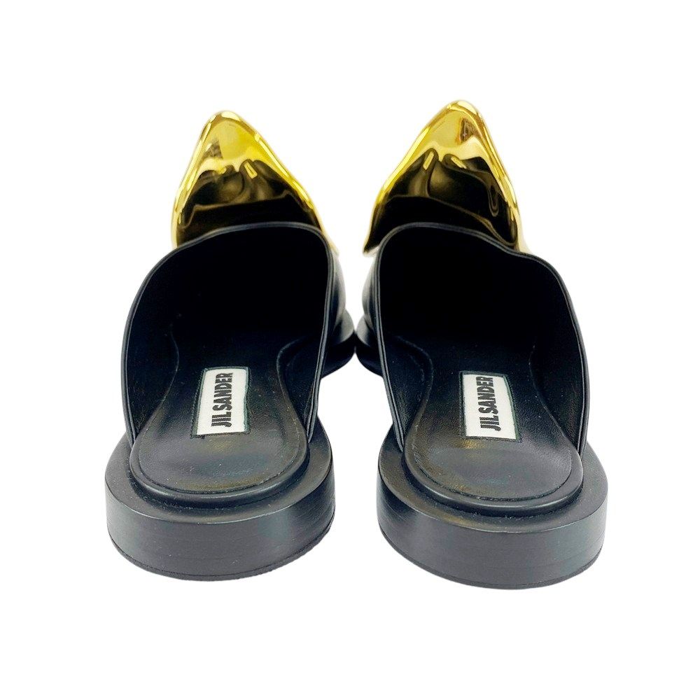 ジルサンダー メタルプレート ミュール ポインテッドトゥ サンダル レザー ブラック ゴールド 36 箱 21675 5