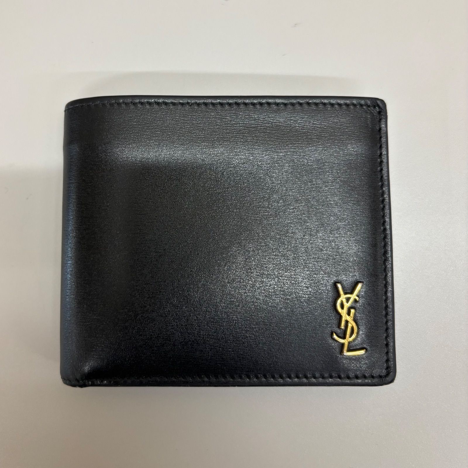 Yves Saint Laurent サンローラン 折り財布 YSLロゴ ゴールド金具 2つ折り レザー ブラック メンズ