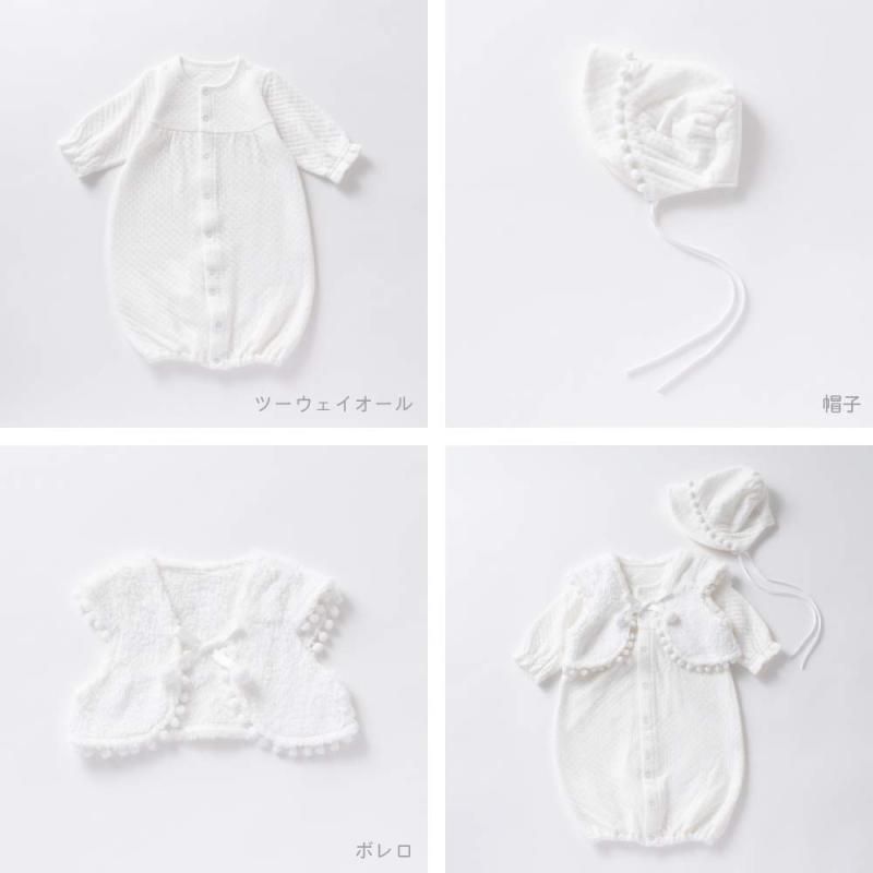 [クリーム デ ココ] ツーウェイオール 帽子 ボレロ 3点セット アンサンブル お祝い [セレモニー/フォーマル] 日本製 秋冬 赤ちゃん オフホワイト 50-70cm