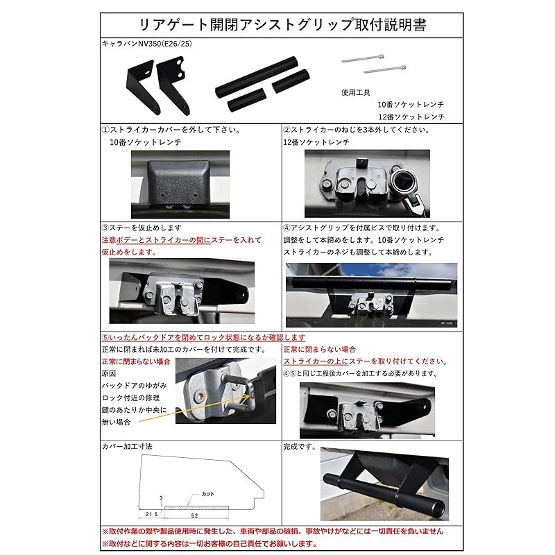 ※取付作業の際や製品使用時に発生した、車両や部品の破損、事故やけがなどには一切責任を負いません