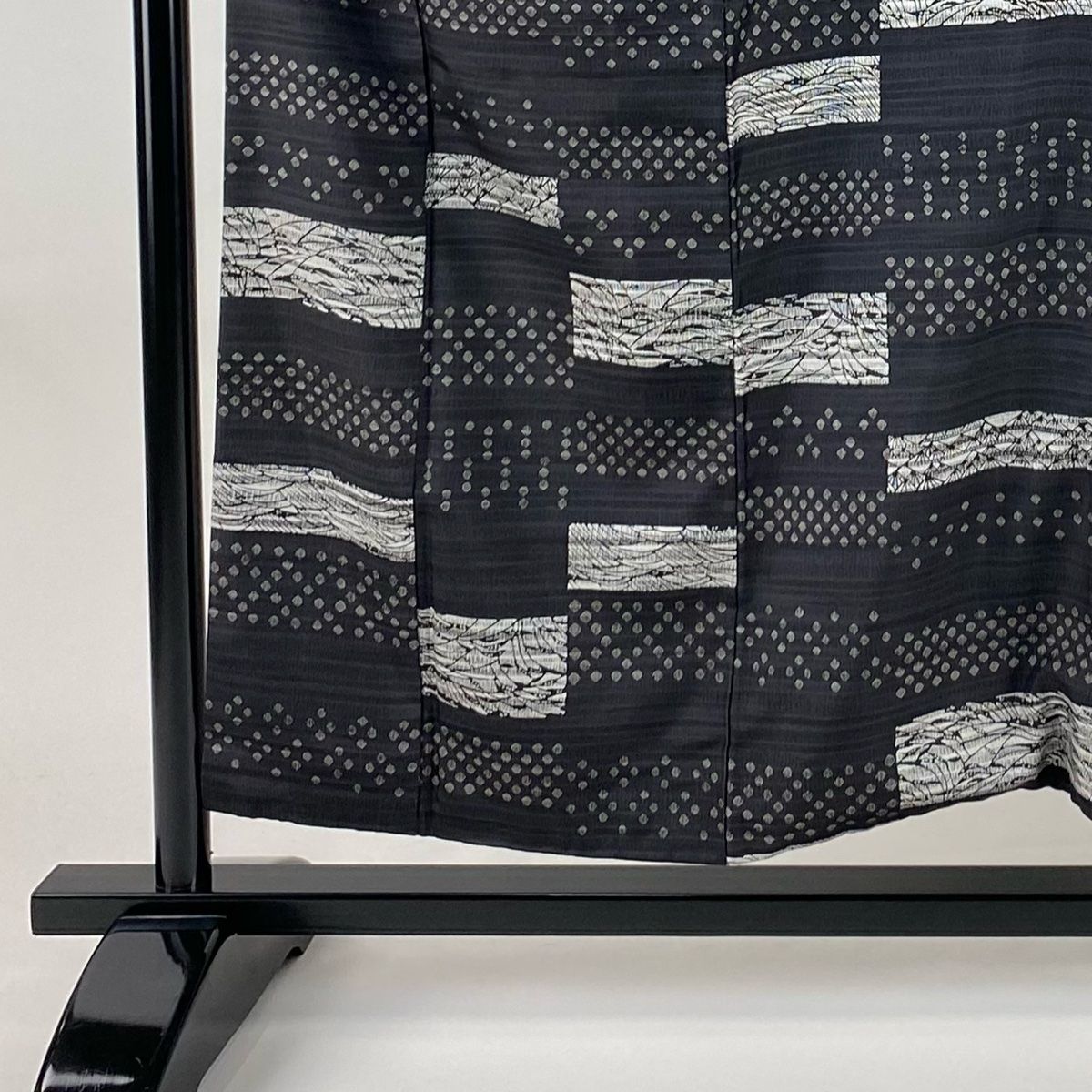小紋 身丈155 cm 裄丈64 M 袷 紬地 葉柄 波 黒灰 正絹