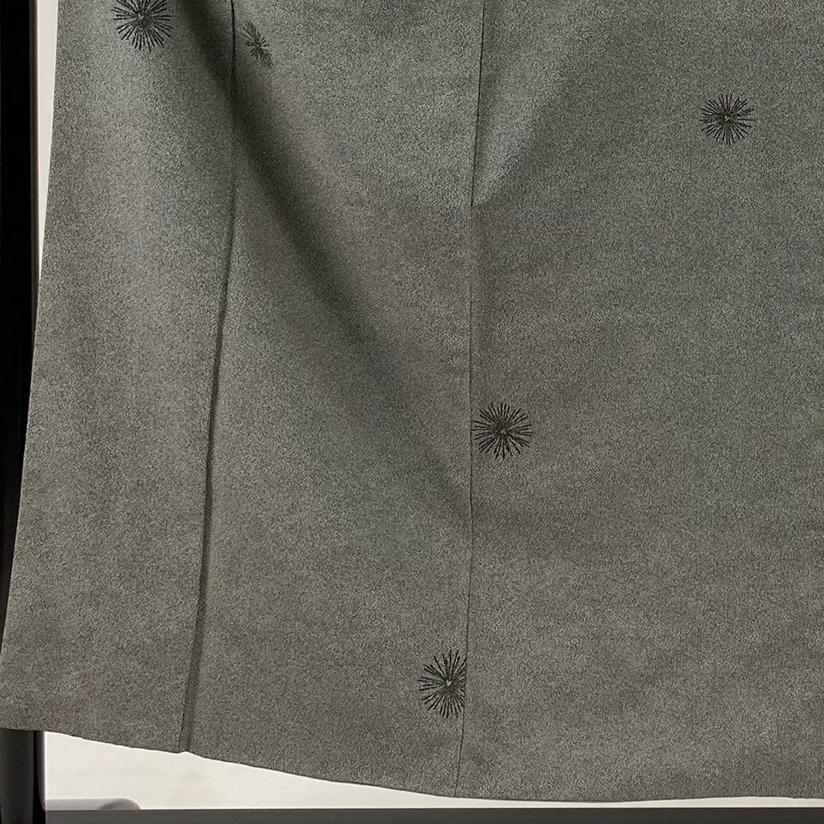 小紋 身丈154 cm 裄丈65 M 袷 若松 幾何学模様 黒灰 正絹 秀品