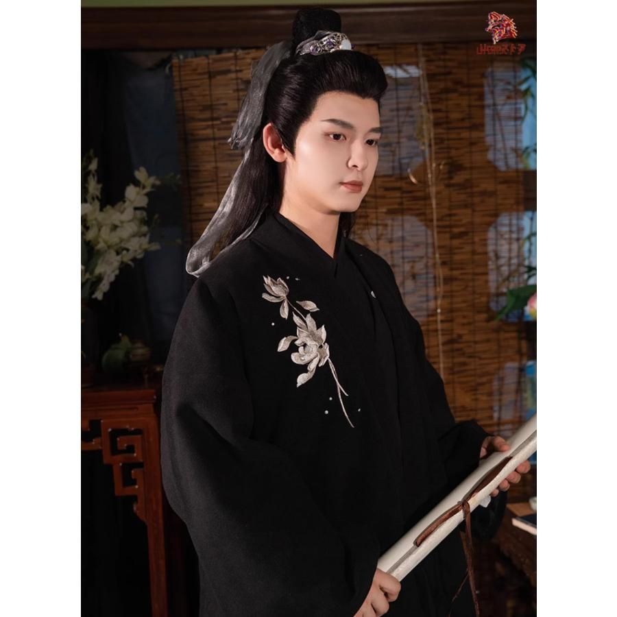 高品質 中華コスプレ衣装 黒系 暗黒 メンズ レディース ペアルック 漢服 チャイナ服 宋朝 中国古代 服装 羽織付き3点セット 蓮 ハス 刺しゅう 水墨