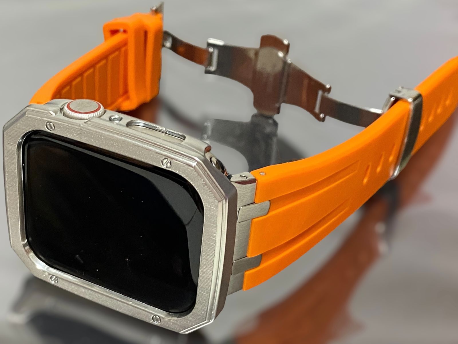 シルバー オレンジ アップルウォッチ ラバーベルト Apple Watch ケース カバー 40 mm 41 44 45 49 mmApple 用