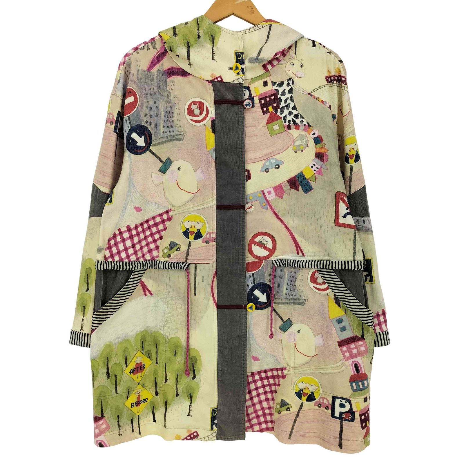 アルベロベロ OLLEBOREBLA オレボレブラ ブタさん 街並みプリント 異素材切替 フード付 コート レディース 表記無