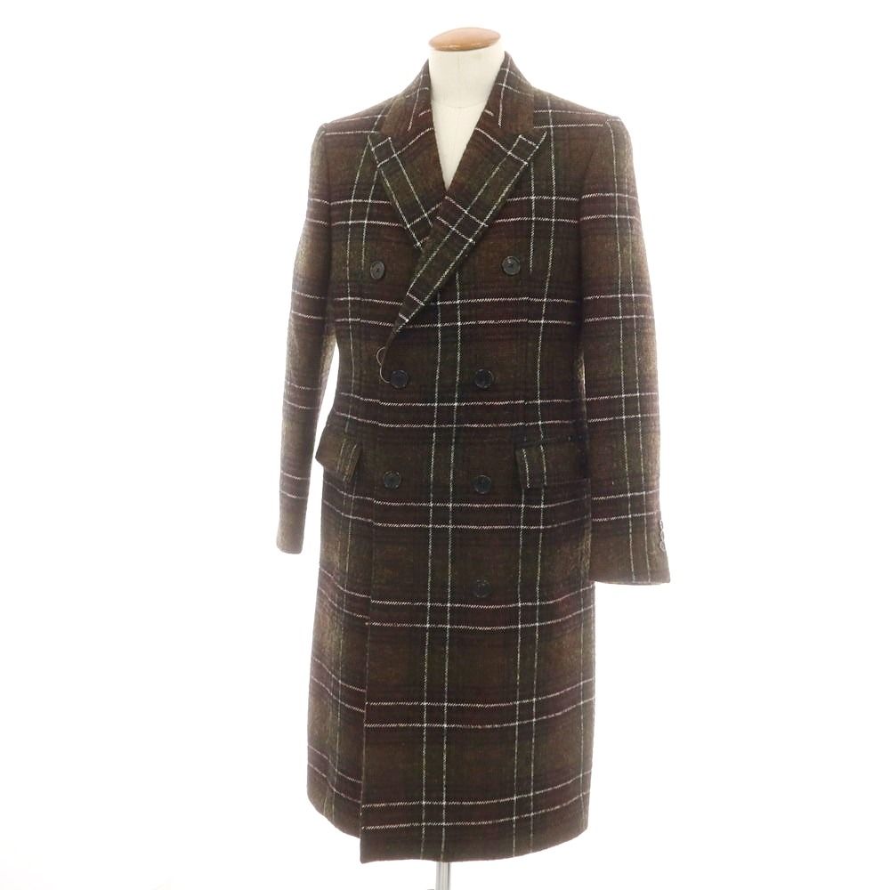 サル プリヴェ SALLE PRIVEE ウールポリエステル チェック ダブルブレストコート ブラックxオリーブ系 サイズ48 メンズ