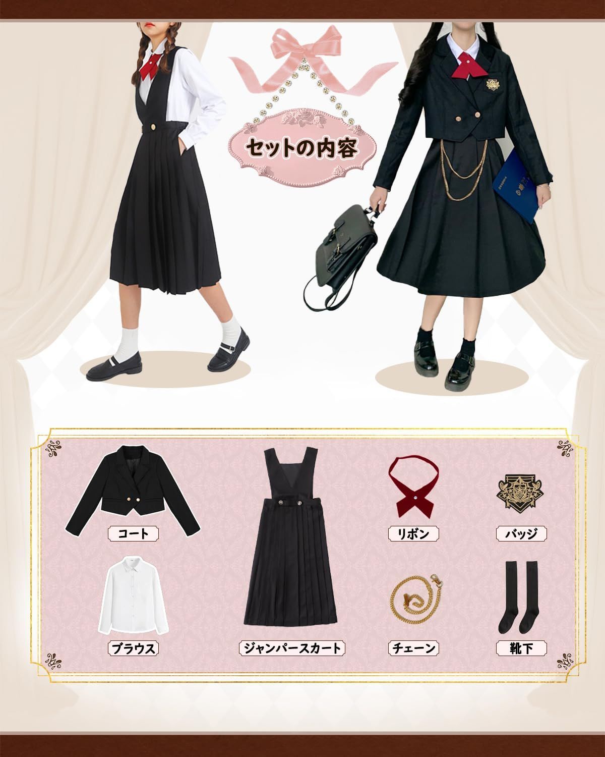 ★セットの内容:ジャンパースカート+ブラウズ+コート+クロスネクタイ+チェーン+ 靴下。JIURUN は商標登録済の日本ブランド。商標登録証:登録第5973809号。?ご注意:製品に何の問題がございましても、24時間以内に必ず返信しておりますので、お気軽にメールにて御連絡くださいようお願い致します。全力でご対応させていただきます。ご安心に選択してください。 ★制服 ロリータ:☆お嬢様みたいレトロの貴族風に漂うセットアップを新作しました。☆こだざわりのある仕立てで上品感に溢れて、リボンのネックとフリルデザインで可愛いを演出してくれます。☆優れた柔らかい生地で肌触り良くて着心地快適な2点セットです。☆長袖で今の季節にピッタリして、Aラインの膝丈スカートも体型カバーしてくれて着痩せで嬉しいです。 ★制服 ワンピース:☆ユニークな金色のボタンも上流さアップして、ちょっとした刺繍もきれいなポイントです。☆ベルト付でスリムなウエスト調節が可能。☆余計な飾りもなく、シンプルで落ち着いた感じになります。☆いつまでも可愛く着こなすことが出来る、定番で使えるワンピース。リボンは取り外し可能なので、シンプルなジャケットとしても着られるよ。 ★【制服 コスプレ】普段に出勤、通勤、通学、お出かけ、リゾート、デート、ウェディング、二次会、卒業式、旅行、女子会、飲み会、ビジネス、フォーマル、パーティー、クリスマス、ハロウィン、バレンタインデー、仮装パーティー、クリスマスパーティー、コミケのコスプレ変装、演劇、映画、舞台、学園祭、カーニバル、イベント、余興、サンバ、お祭り、宴会、かくし芸、マルディグラ、誕生日、お遊戯会、歓迎会、送別会、忘年会、文化祭、舞踏会、演奏会、合唱、部活、スポーツジム、スポーツクラブ、サークル活動 、観光服 、ダンス、海外、普段着、キャンプ、アウトドア、ウォーキング、外出着、部屋着、ルームウエア、花火大会、レディースデート、友達揃い、父の日、記念日、プレゼント、友達、友人、クラス服、集?服、日常用などの用服として様々な場面・プレゼントでご利用いただけます。 ★安心の返品返金制度。万が一、初期不良であった場合、購入後30日以内での返品返金メーカー保証制度がございます。 安心してお試し下さい。なお、未使用品に限り、返品を承っております。【 返品をお受けできないもの 】一度、ご使用になられた商品。商品の箱などを紛失、破棄された商品。お客様が汚損、破損された商品。お届けしてから30日以上経過したもの。 続きを見る この商品について