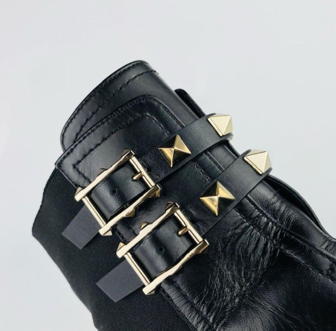 ヴァレンティノ ガラヴァーニ レディース レザー メタルスタッズストラップ付き サイドゴア チャンキーヒール ショートブーツ ブーティ 35 イタリア製 レディースブーツ ブーツ ブランド 秋冬物 カジュアル ブラック