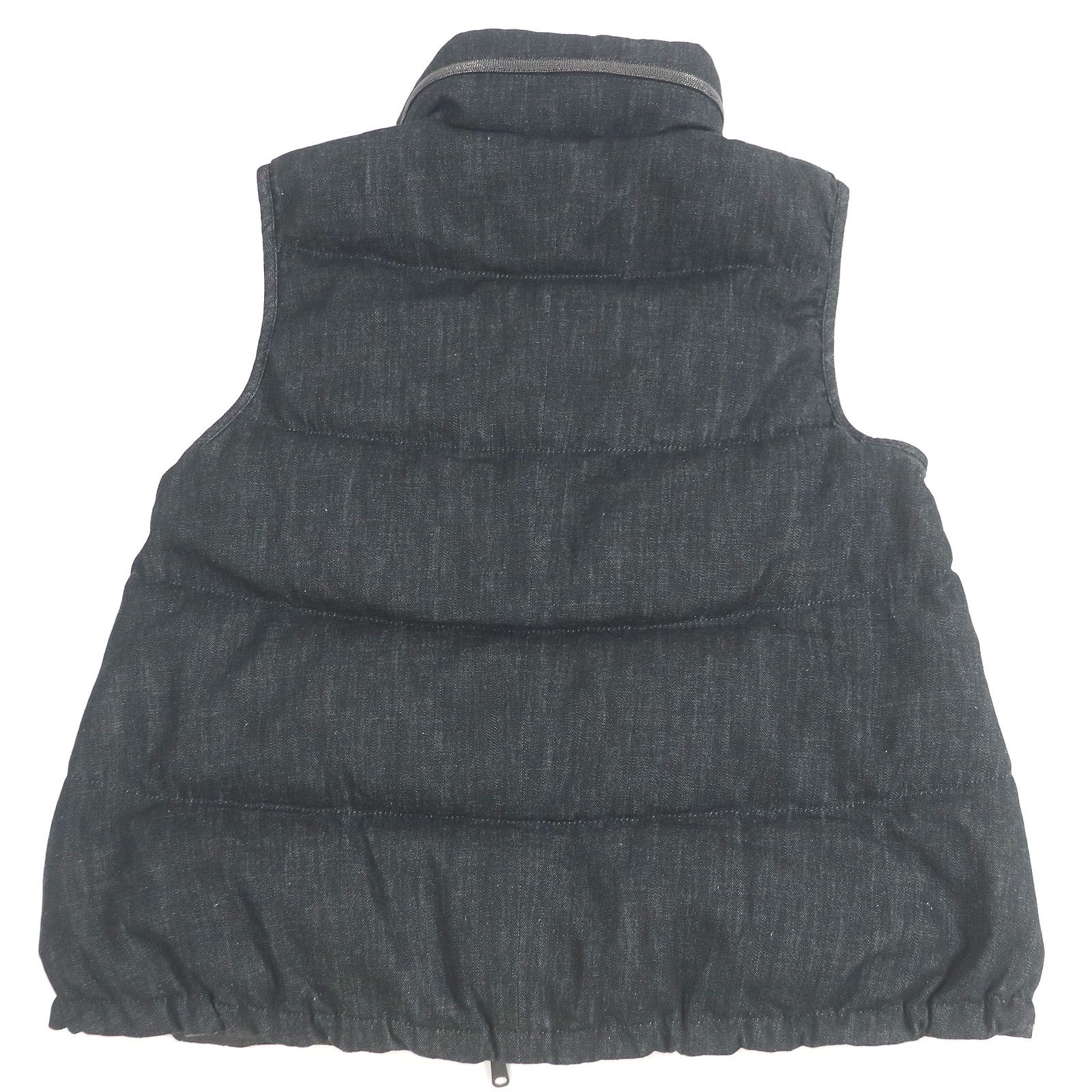 □Brunello Cucinelli ブルネロクチネリ フード入り ビジュー装飾 デニム ダウンベスト ジレ ブラック 38 イタリア製 メンズ