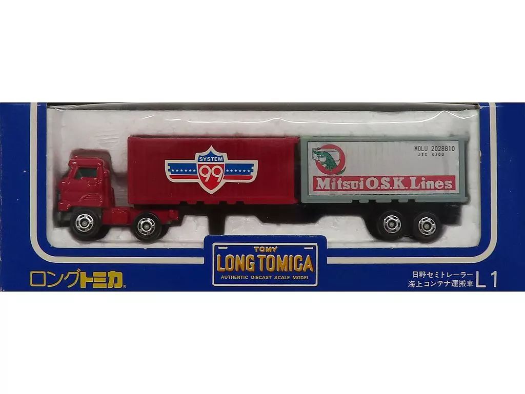 ミニカー 1 110 日野セミトレーラー 海上コンテナ運搬車 レッド×グレー ロングトミカ L