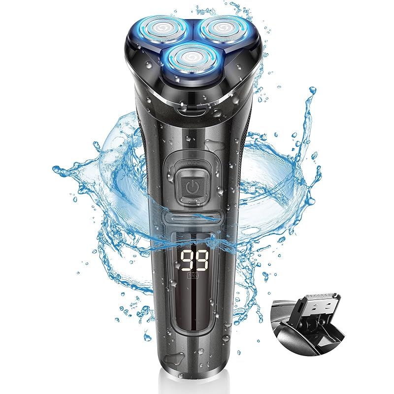 シェーバー メンズ 電気シェーバー ひげそり 電動 IPX7防水極薄メッシュ刃3ヘッド回転式 深剃り 髭剃り 低騒音 丸洗い可 乾湿両用 USB充電式 日本語取扱説明書付き 男性への誕生日プレゼント 01