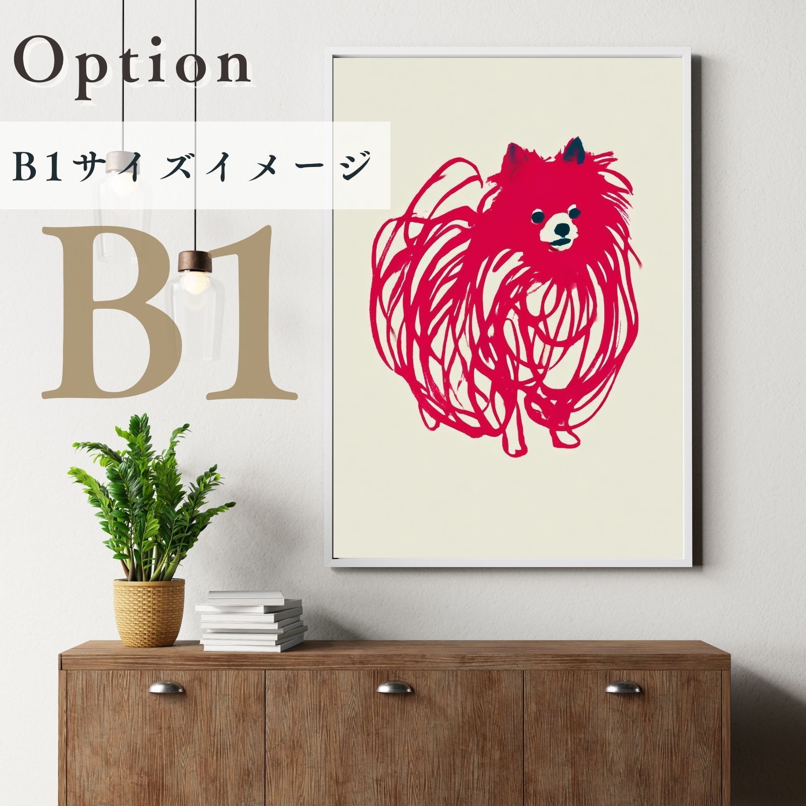 名入れOK Red Line - ポメラニアン犬 No.3 アートポスター ペットロス 北欧モダン ミニマルインテリア カフェスタイル