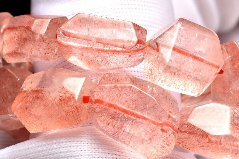 赤く美しい物はファイアークォーツ、その他にもハーレクインクォーツ、ハーレクイン水晶など流通名を多数持った天然石です。