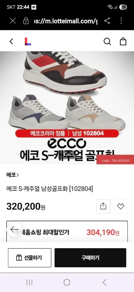 255 Ecco エコー カジュアル ゴルフシューズ 1006