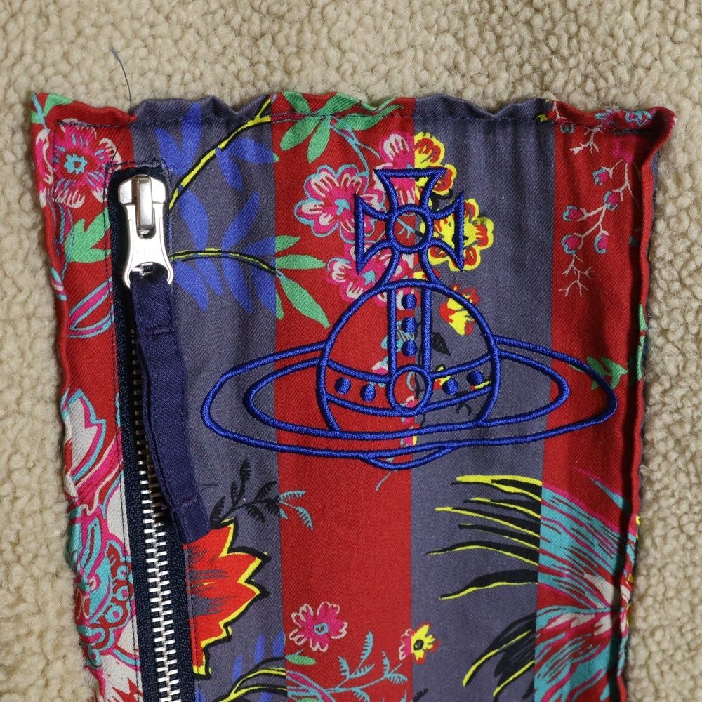 Vivienne Westwood ヴィヴィアンウエストウッド オーブロゴ刺繍 フラワープリント切り替え スタンドカラー ジップアップ ボアフリース ジャケット ベージュ|レッド VW-LP-86923