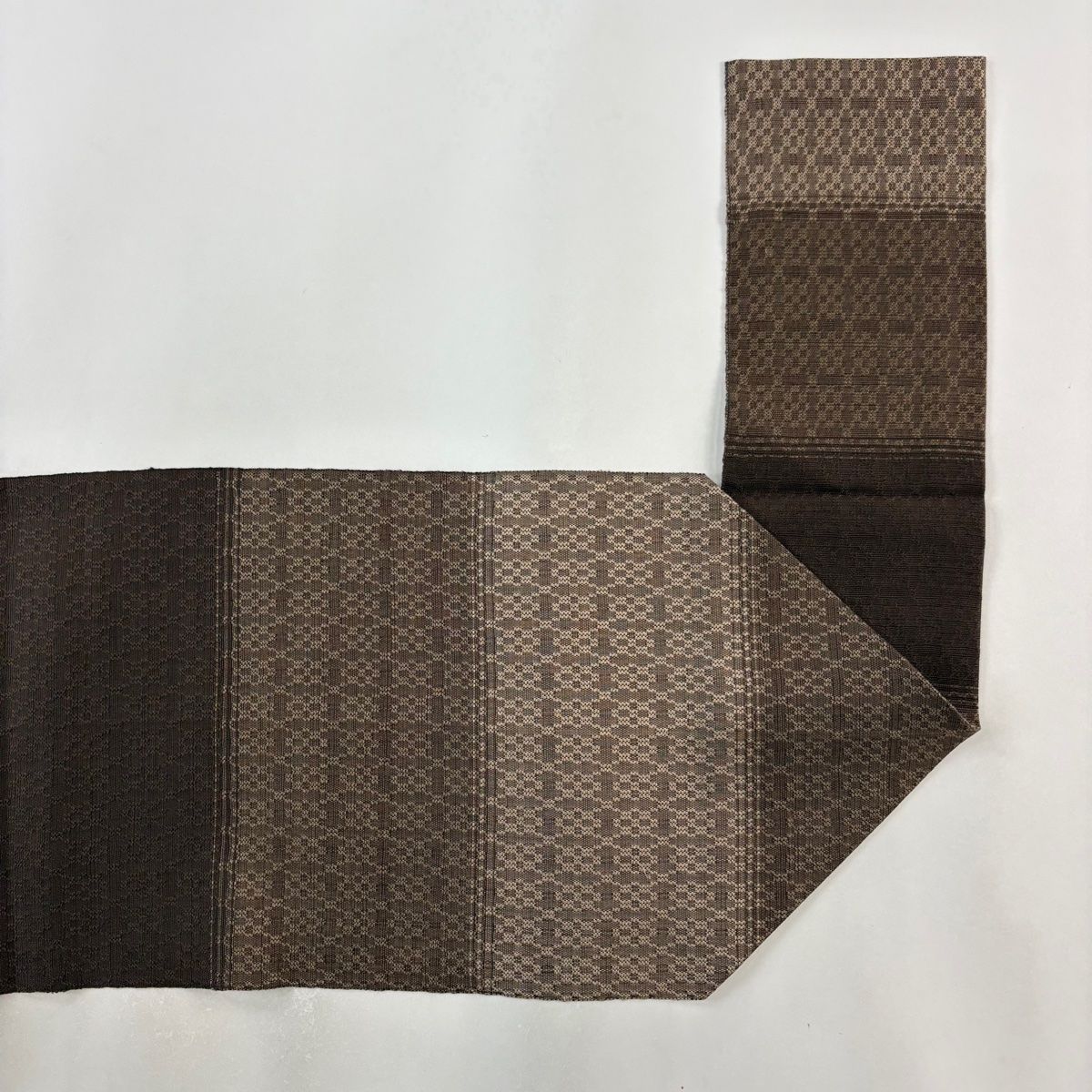 名古屋帯 八寸名古屋帯 松葉仕立て 縞 幾何学 茶色 正絹